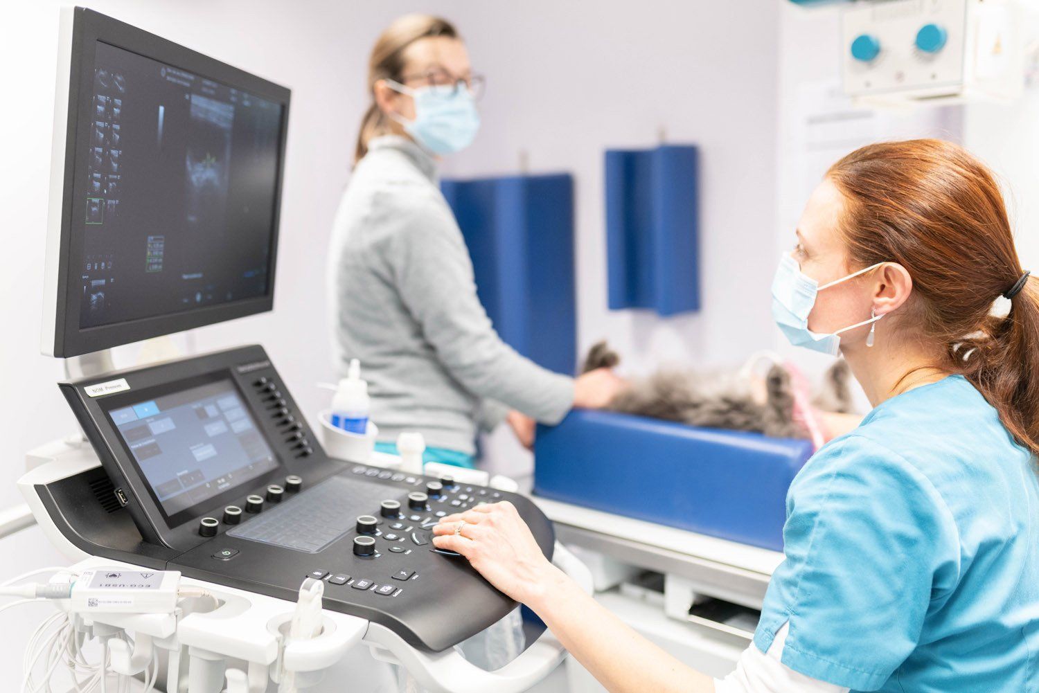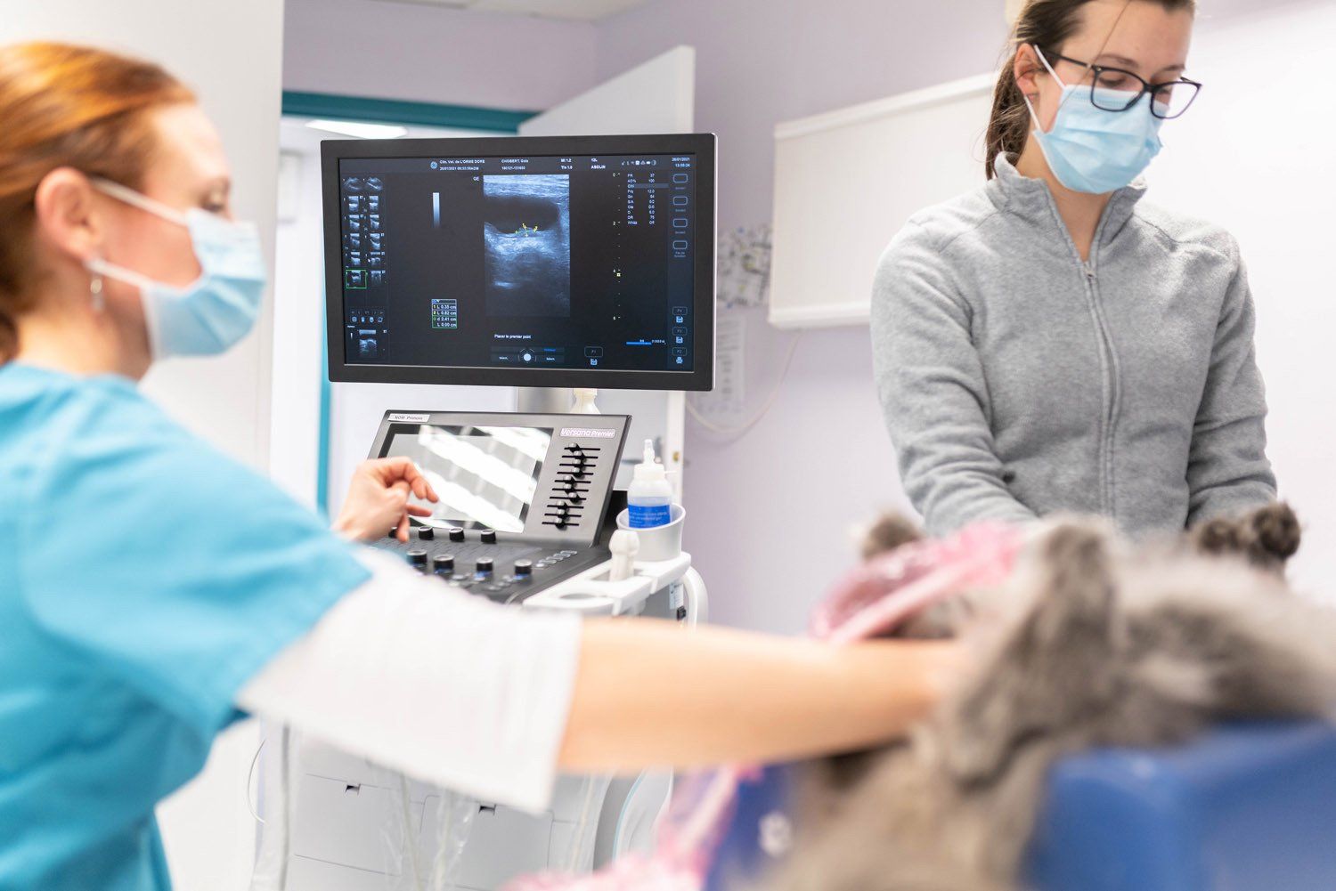 L’échographie fait intervenir des ultrasons au travers d’une sonde de taille adaptée à l’animal et la zone à observer. Cette sonde est dirigée en surface et glisse sur la peau, c’est indolore. Pour un examen abdominal, il est indiqué de laisser l’animal à jeun.